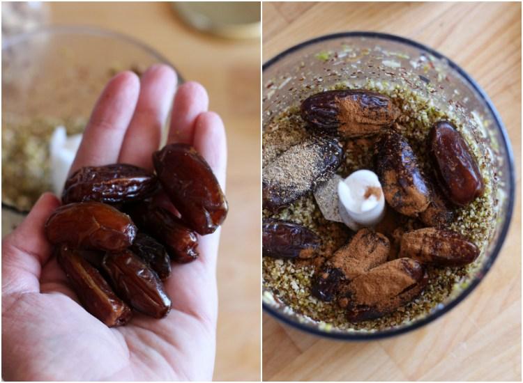 Si los dátiles están muy secos recomiendo hidratarlos durante 10 minutos en agua tibia antes de utilizarlos. Descartar el agua antes de añadirlos a la procesadora.