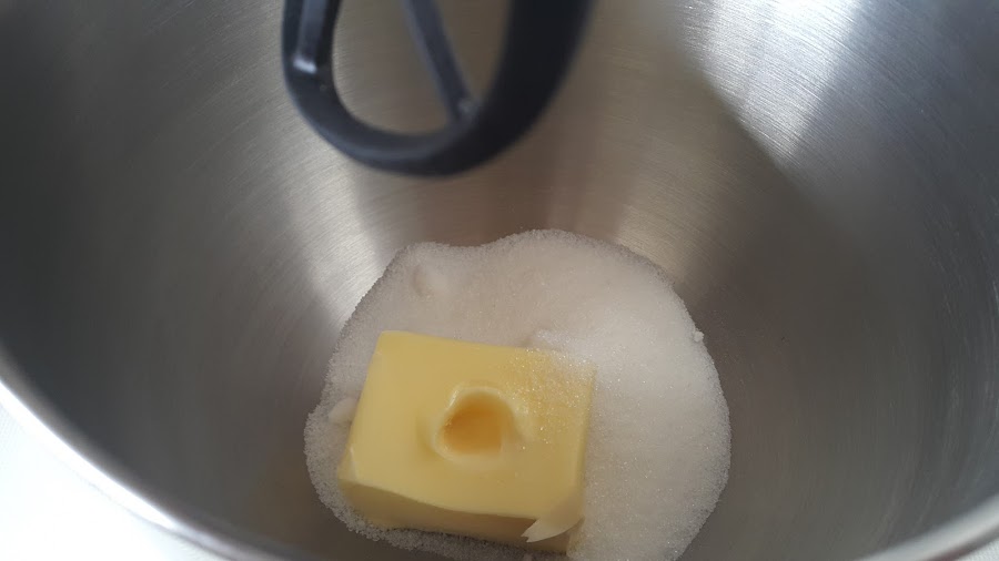 Empezamos mezclando la mantequilla a temperatura ambiente con el azúcar.