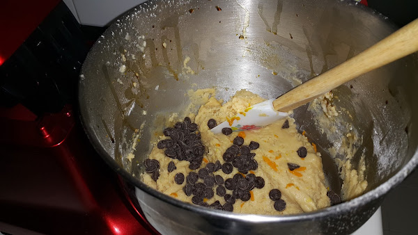 Añadimos la vainilla, los chips de chocolate y la ralladura de naranja.