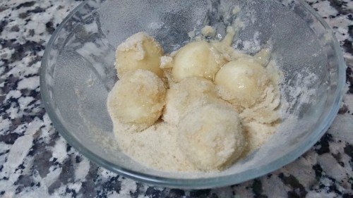 6. - Volvemos a pasar por huevo y pan rallado un a o dos veces más, lo que nos de de si los huevos.