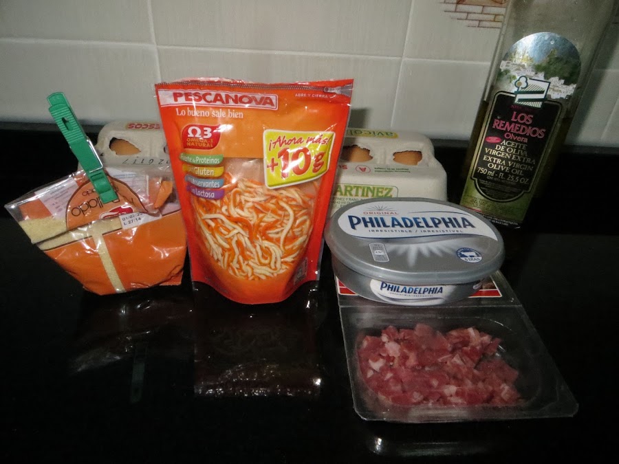 Separamos la mitad del queso crema en dos tazones a uno de ellos le añadimos los tacos de queso y a otro el surimi rallado. Estos componentes lo podéis cambiar por lo que más os guste: anchoas, salmón ahumado, jamón york, pimiento….