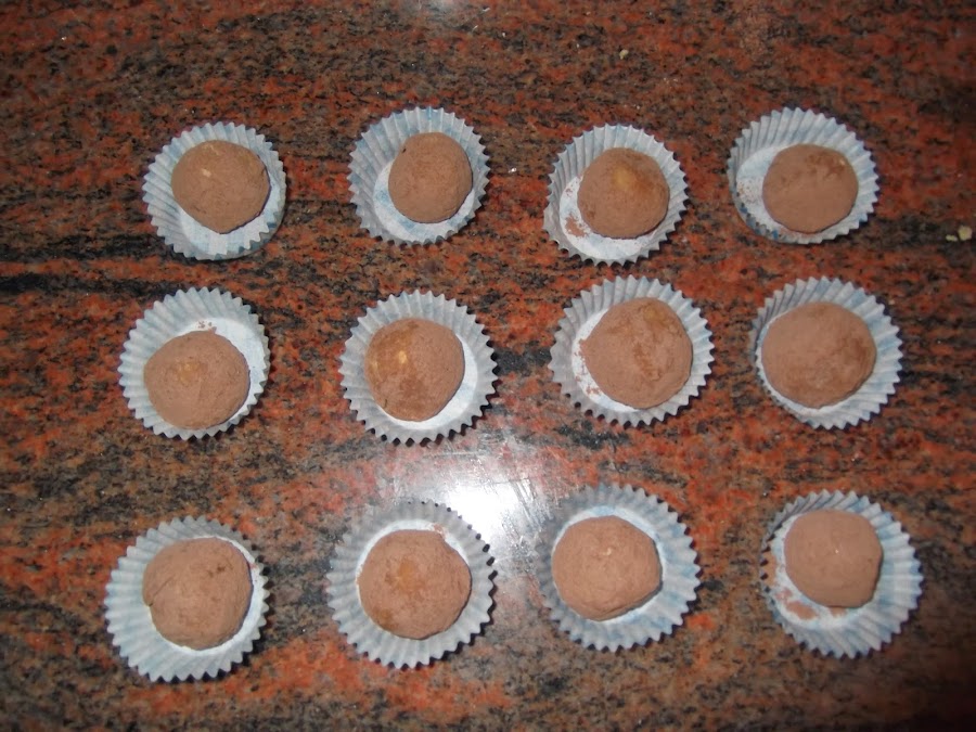 Metemos la mezcla al frigorífico durante una hora. Lo sacamos y vamos haciendo bolitas con las manos y las pasamos por el cacao para rebozarlas. Las dejamos en la nevera y las sacamos a la hora de tomar el café. Están buenísimas y puede ser una rica golosina para los más pequeños, aunque tened cuidado porque llevan gran cantidad de azúcar.