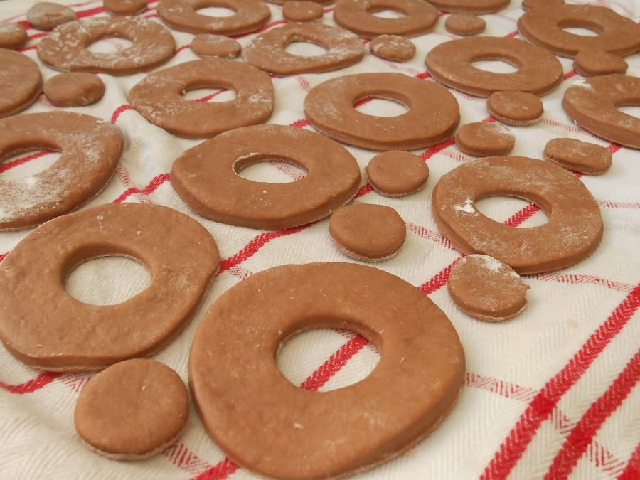 Se mezclan los ingredientes y se deja reposar. Cuando haya doblado el volumen, se cortan tal como aparece en la imagen y se dejan levar otra vez. Se fríen en aceite de girasol hasta que estén dorados.