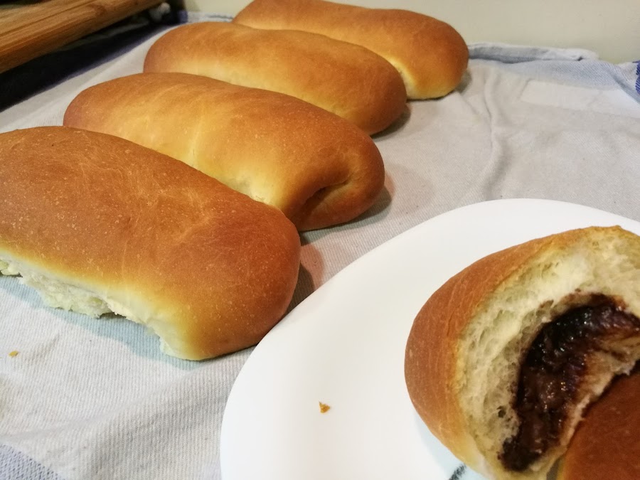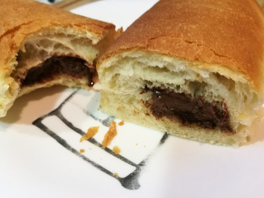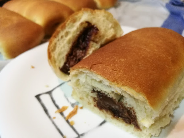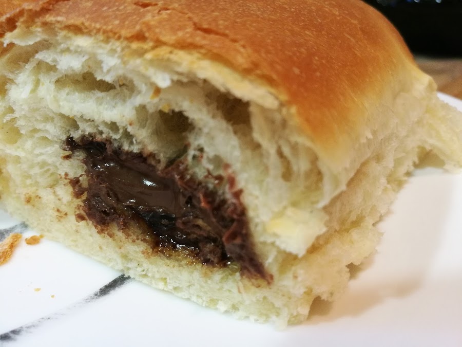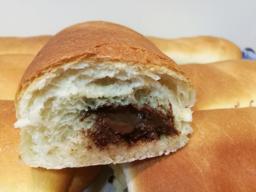 - Ponemos una cucharada de la crema de chocolate en el centro de cada porción, repartiendo a lo largo, y cerramos en forma de bollito.