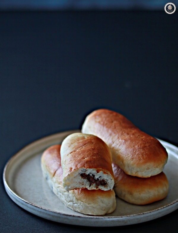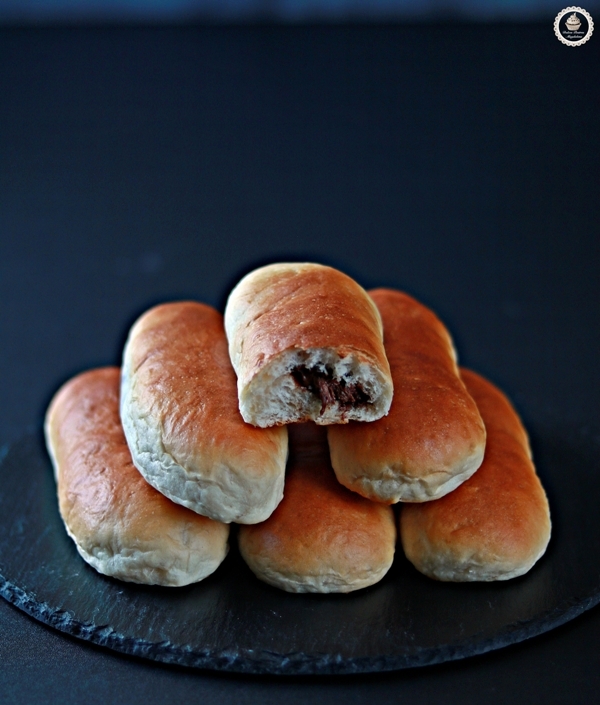 Estiramos cada poción formado un rectángulo. Y con la ayuda de una manga pastelera, ponemos una tira de crema de cacao y avellanas a lo largo del rectángulo. Enrollamos la masa sobre si misma sellando bien los bordes, y los colocamos en una bandeja de horno forrada con papel vegetal. Tapamos con un paño y dejamos levar una hora aproximadamente.