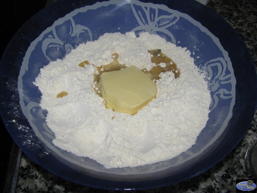 A continuación mezclamos la harina,azúcar,el huevo,sal,aceite y la mantequilla a punto de pomada.