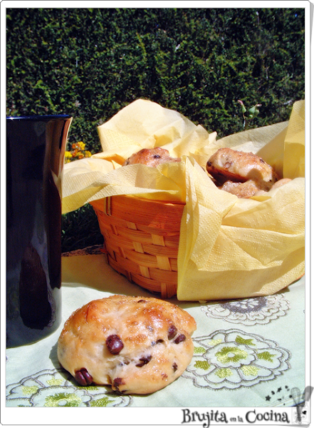 Para los que sean como yo que pasen de dietas hoy traigo esos bollitos tan ricos de desayuno con pepitas de chocolate. Tienen mil nombres según las marcas, de hecho algunas incluso las han ido cambiando pero sea como fuere y les llames como quieras no dejan de estar bien ricos, y total uno para el desayuno no hay problema, tienes todo el día para quemarlo, así que venga come uno y llénate de energía.