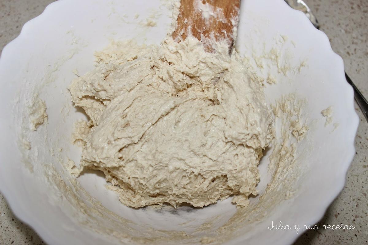 Removemos bien con una espátula o cuchara de madera. Quedará una masa pegajosa.