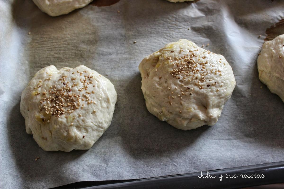 Introducimos los panecillos y los horneamos durante 10 minutos con calor solo abajo, y otros 8 minutos con calor arriba y abajo, hasta que estén dorados. El tiempo depende de cada horno, si veis que se doran demasiado bajáis la temperatura del horno, pero a mi me quedaron perfectos.