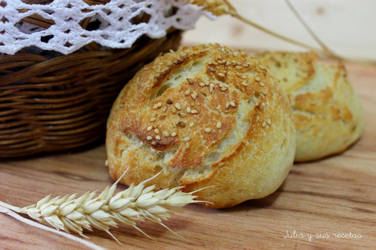 En esta mi segunda aportación me he decidido por unos bollitos de pan sin amasado con sésamo, que nos recomienda Marisa de su blog Thermofan. Y lo he hecho porque son unos panes sencillos de hacer, no hay que amasarlos y nos proporcionan un pan delicioso y crujiente.