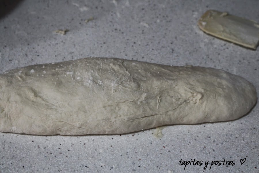 Le damos forma de rulo y cortamos porciones de unos 65 gramos.