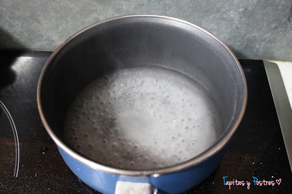 Mientras hacemos el almíbar para que se vaya enfriando.