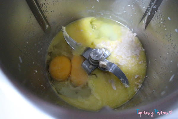Añadimos los huevos y la levadura desmenuzada. Mezclamos bien.