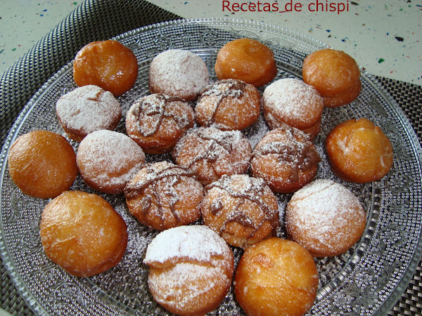 Cuando hayan subido un poco freirlos en abundante aceite de girasol no muy caliente porque se quemarian por fuera y crudos por dentro, subirán bastante con el calor del aceite.