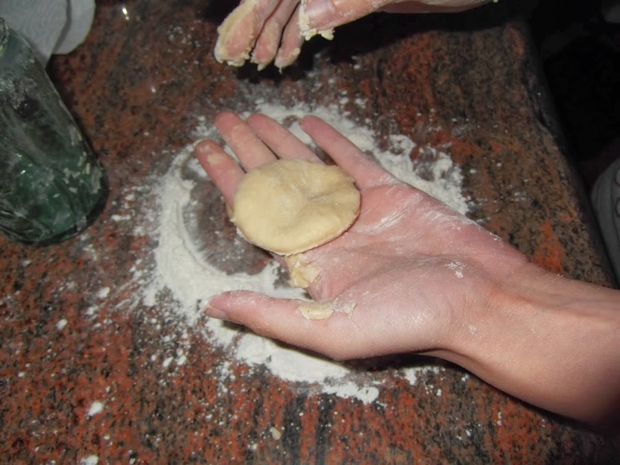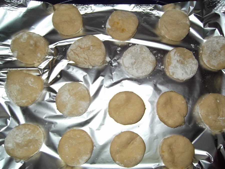 Una vez que haya pasado este tiempo, se van cogiendo pequeños trozos de la mezcla se aplanan un poco y se cortan con un vaso o cortador de pastas con un centímetro de grosor. Se dejan en una bandeja para que reposen durante otra media hora y la levadura siga haciendo su efecto.