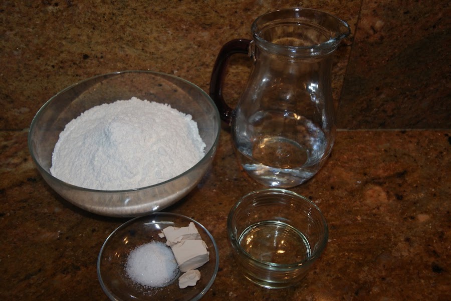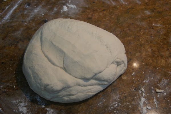 Espolvoreamos un poco de harina en el mármol o mesa donde trabajemos y formamos una bola.