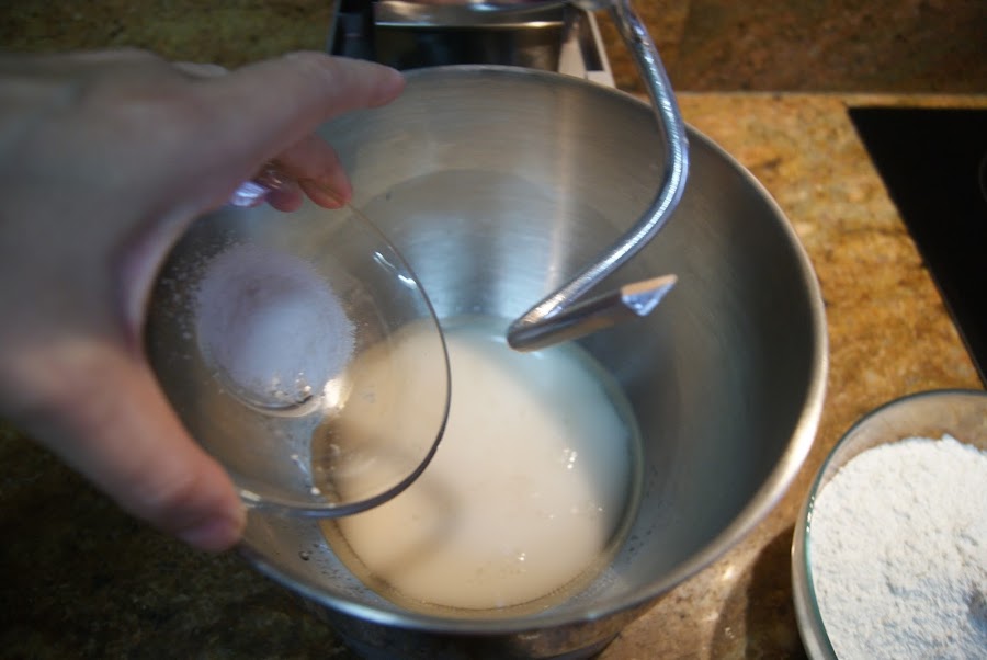 A continuación añadimos la harina y la sal y amasamos 10 segundos a velocidad máxima y luego 2 minutos a velocidad media