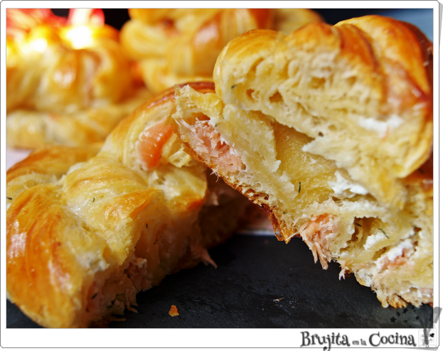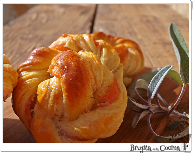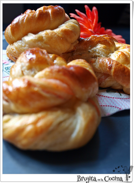 No es necesario que la masa siempre sea para dulce, estos bollos están deliciosos, aunque les hice un pelin grandes (no sabía si al retorcer las liaría), en otra ocasión les haré más pequeñitos para que sean mas tipo canapé.