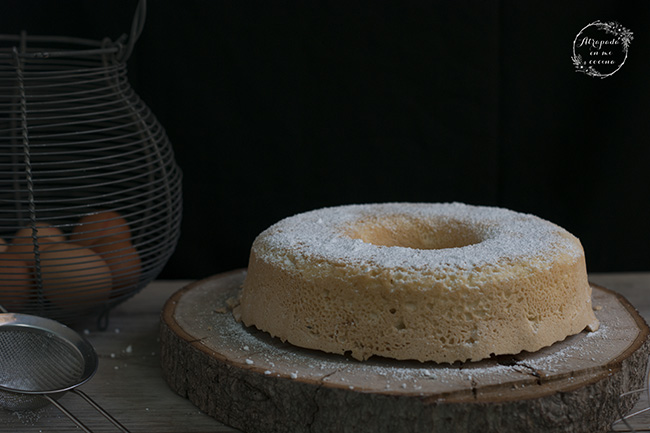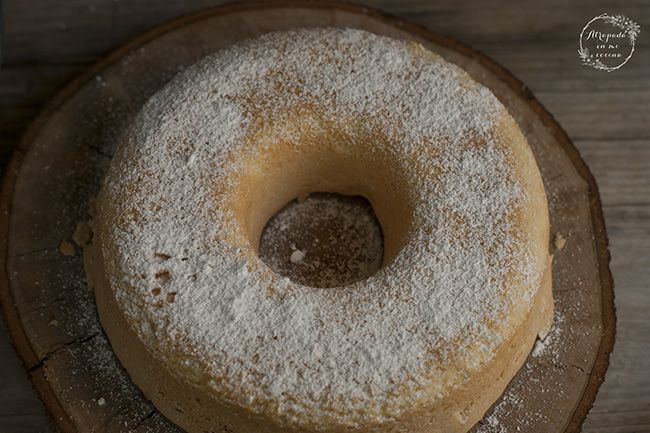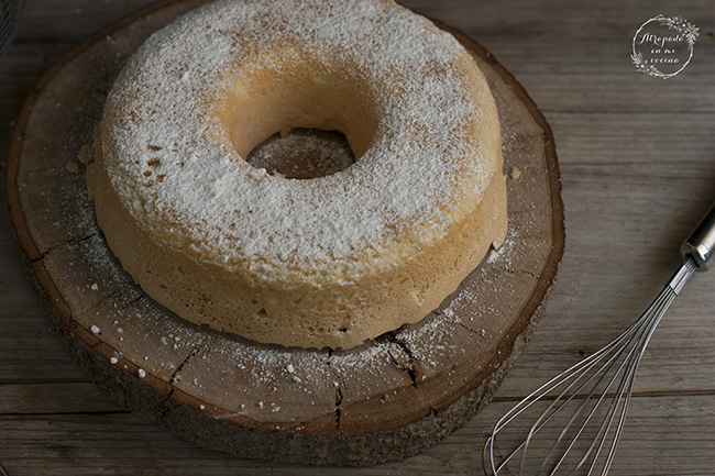 Engrasamos un molde cilíndrico con forma de rosco y vertemos la masa dentro. Introducimos en el horno precalentado a 160º y horneamos hasta que al pinchar con una brocheta ésta salga limpia, a partir de los 30 minutos ya podéis ir comprobando. Sacamos, dejamos enfriar unos diez minutos en el molde y después desmoldamos.