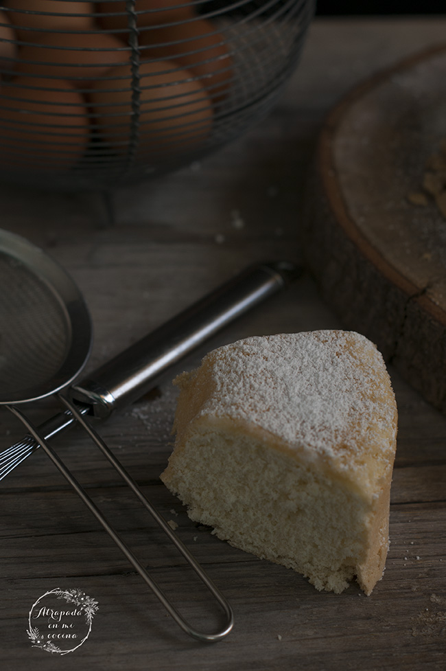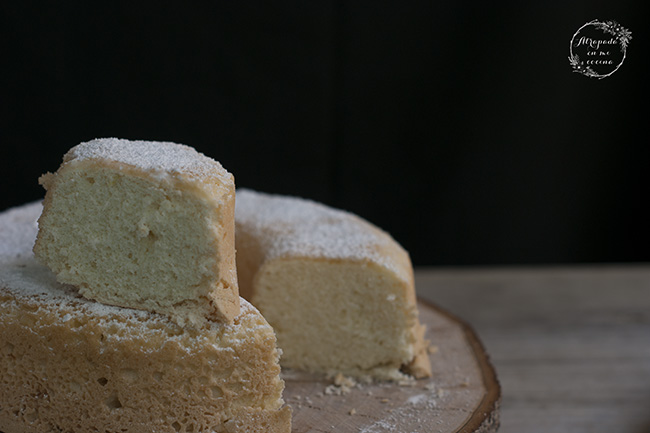 Separamos las claras de las yemas, y montamos las yemas junto con el azúcar, añadiendo la ralladura de limón y el aguardiente. Cuando cojan cuerpo y blanqueen, reservamos. Montamos también las claras a punto de nieve. Mezclamos con las yemas con movimientos envolventes. Añadimos poco a poco la Maizena tamizada y seguimos mezclando con movimientos envolventes.