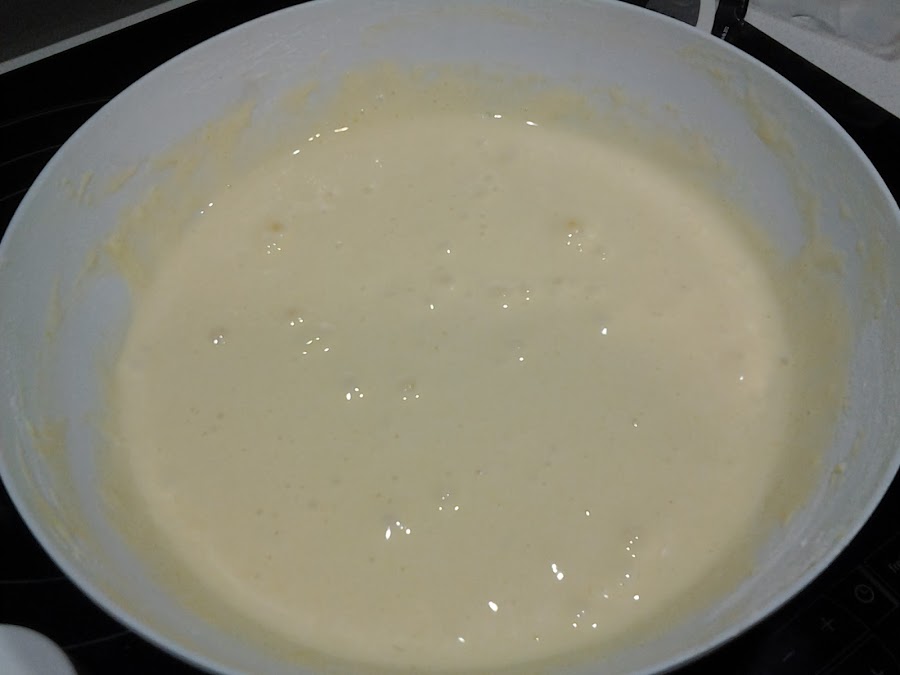 Mezclamos la maicena con la levadura, lo tamizamos y lo incorporamos poco a poco a la mezcla anterior.