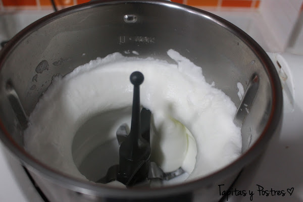 Ponemos la mariposa y añadimos las claras. La vamos a montar 8 minutos a 37º y velocidad 3 1/2.