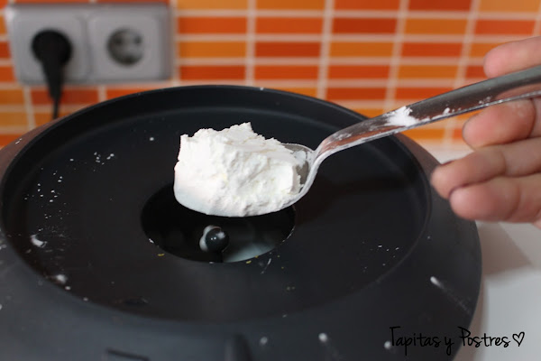 A continuación vamos a ir añadiendo por el bocal la maicena poco a poco, recordad que seguimos teniendo la máquina en marcha en velocidad 2.