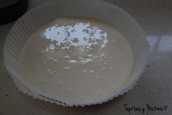 Vertemos en un molde engrasado. Yo en esta ocasión he usado unos moldes de papel desechable, son como un papel de magdalenas pero enorme jejeje.