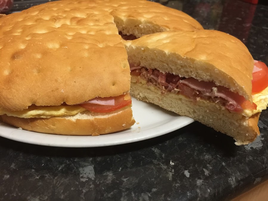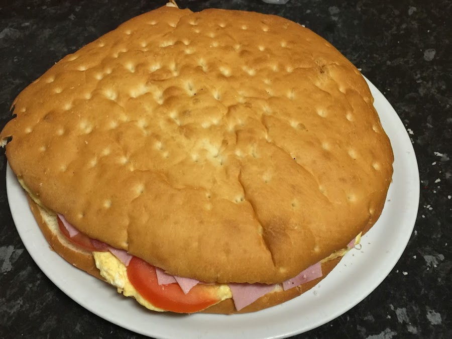 Este tipo de bollo de pan enorme que venden en las panaderías,es ideal para preparar esta receta.