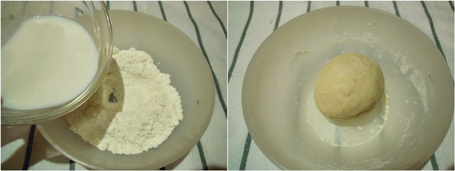 Mezcla la leche con la harina y amasa un par de minutos hasta conseguir que esté todo unido y la masa sea homogénea, haz una bola.