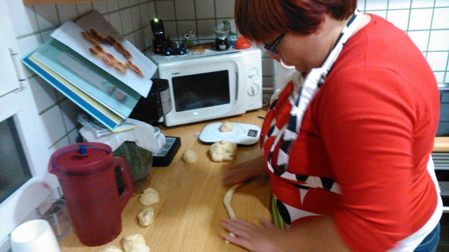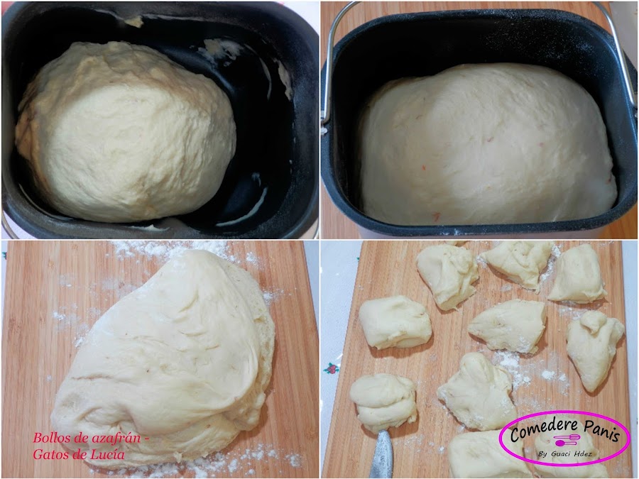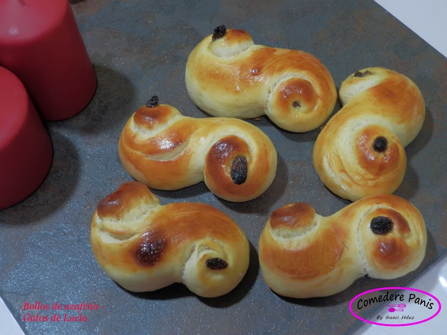 Aunque claro en aquel primer momento no sabía cuantas fotos hacer y me quedé muy corta, era una lástima que una receta así tan sólo tuviera dos triste fotos, por ese motivo hoy vuelvo a editar esta entrada, otro de los motivos es que la receta que hice hace ya más de dos años era tal cual el libro "Fika" repostería sueca, un libro al que le tengo mucho cariño aunque en esta receta sus cantidades son excesivas pues llevaba casi kilo y medio de harina, así que en esta ocasión he decidido adaptar las cantidades más para un consumo familiar. Las primeras veces que preparaba esta receta lo hacía a mano y es un auténtico placer he de reconocerlo, es una masa muy fácil de trabajar, aunque el año pasado por el día de Santa Lucía que es el día de mi hija, estaba muy liada, pero no podía dejar de preparar sus bollos de Santa Lucía ya que en casa ya es tradición, así que los amasé en la panificadora y fue todo un acierto, de modo que a partir de ahora lo amaso en la panificadora y así lo haré este domingo Día 13 de Diciembre, festividad de Santa Lucía.