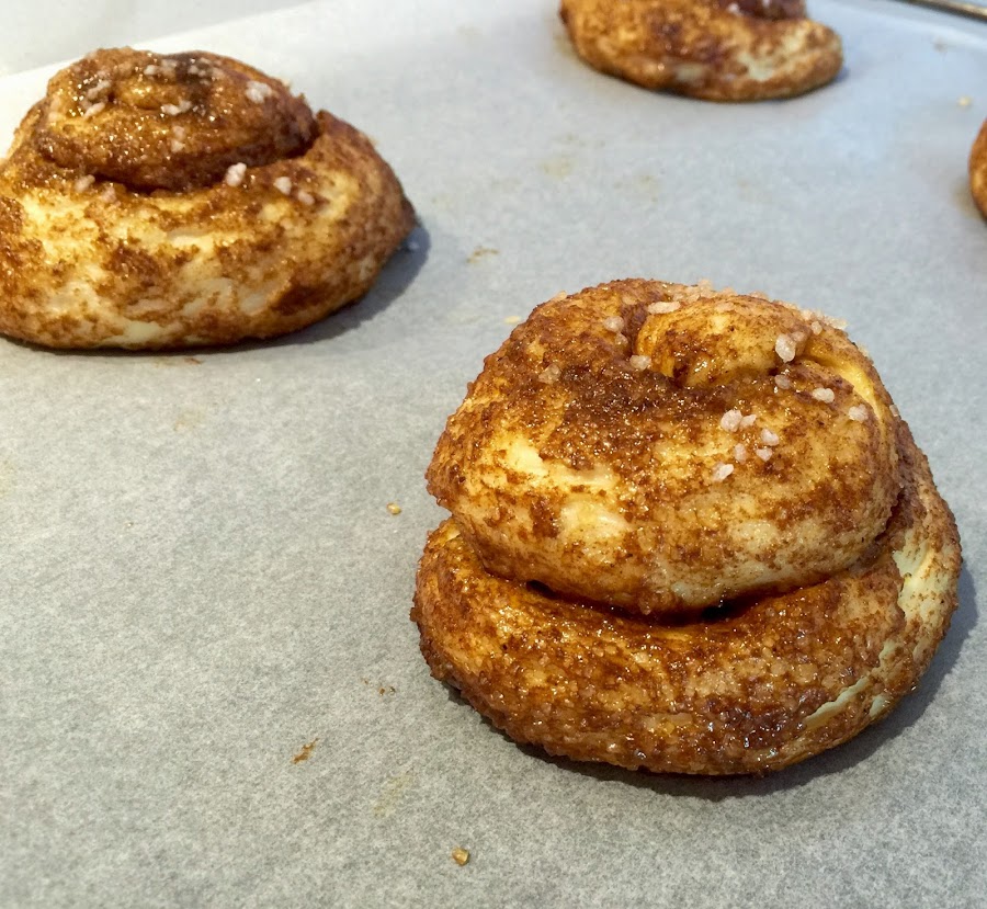 En casa preparamos a menudo los deliciosos rollos de canela, así que estos bollos no podían defraudarnos. Esta receta es más popular de lo que creía, Iban Yarza la publicó en su libro. Si aún no la habéis probado, no esperéis más, el olor embriagador de la canela os conquistará.