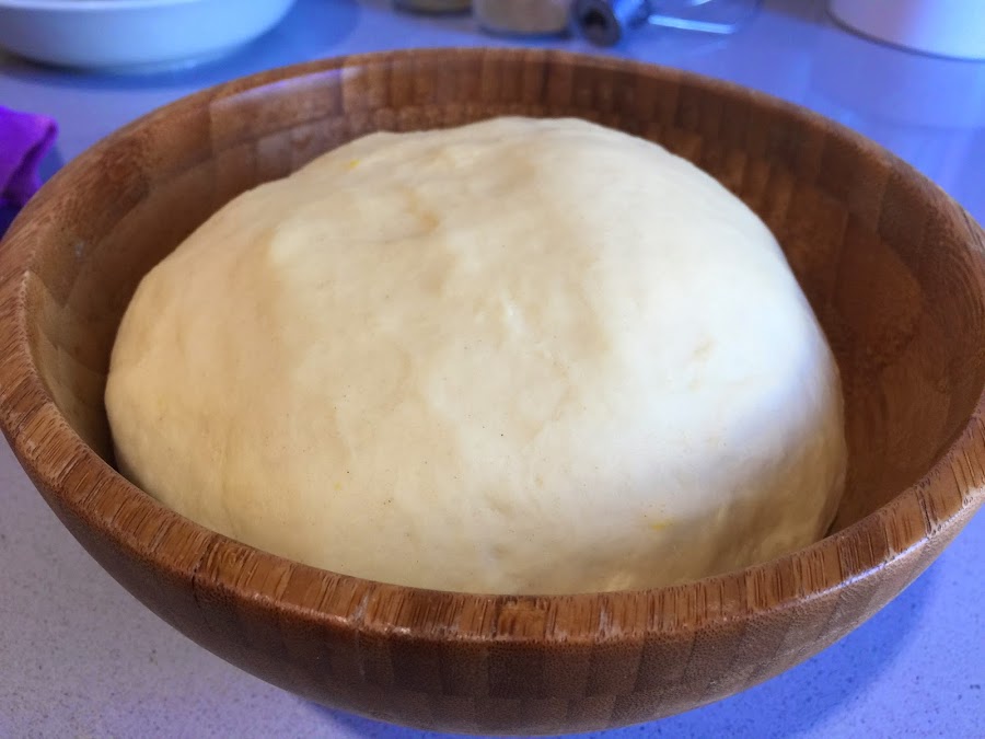 7. Cuando la masa esté completamente satinada la ponemos en un bol y cubrimos con un paño de cocina. Tenemos que esperar a que doble su volumen. Ahora con el frío 1hora o hora y media. En verano el proceso se acelera mucho más.