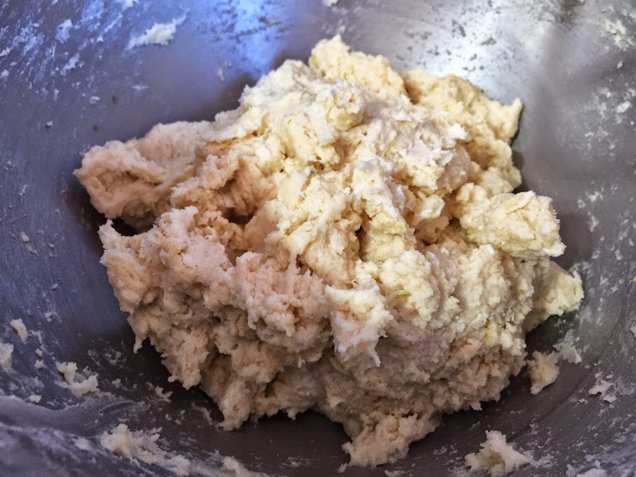 2. Añadimos el azúcar blanco y la sal. Esta masa es muy neutra, a penas lleva azúcar, pero el resultado final es completamente dulce. La cobertura de azúcar moreno le aportará todo el dulzor que necesita. Añadimos también la ralladura de un limón.