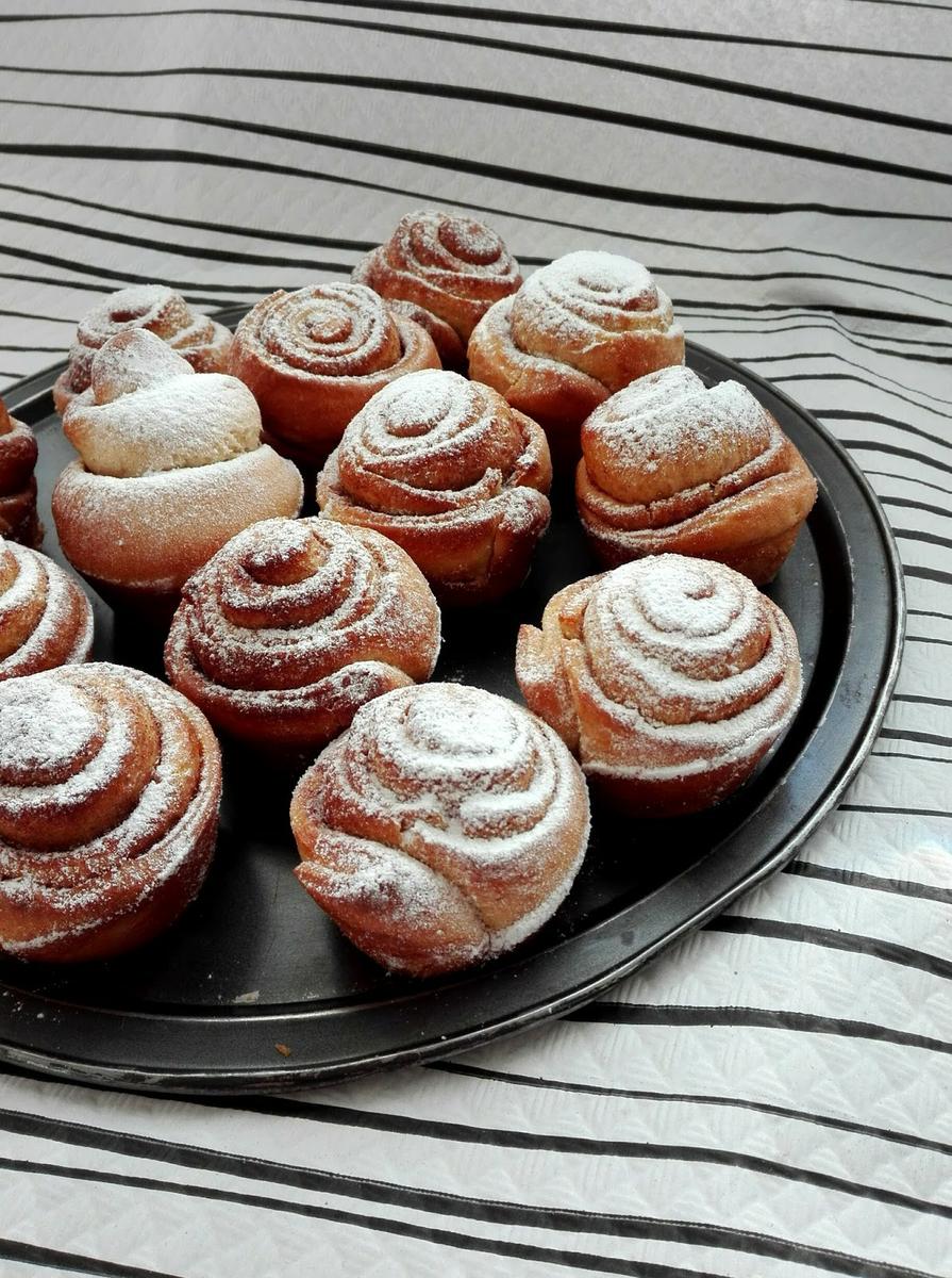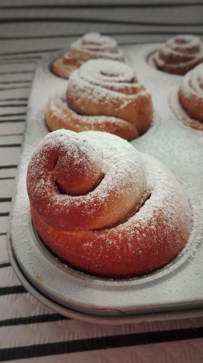 Espolvoreamos con azúcar moreno y con abundante canela.