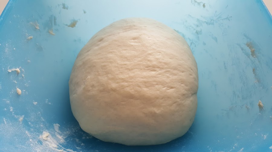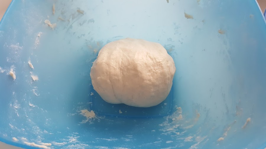 3. - Colocamos hecha una bola en el bol, la tapamos con un paño y dejamos reposar 30 minutos, hasta que doble su volumen.
