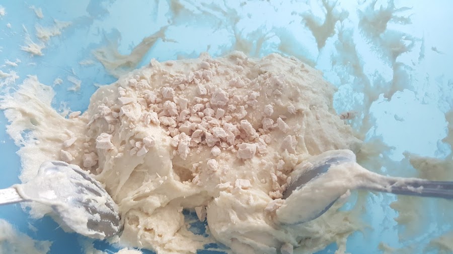 4. - Pasado ese tiempo, amasamos un poco de nuevo, y hacemos porciones de unos 50 gramos. como una cucharada.