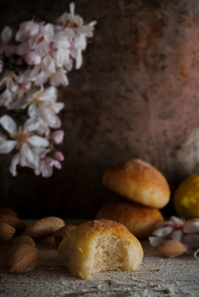 ¿Ves lo esponjosos y tiernos que son? Pues puedes hacer estos bollitos sobre la misma bandeja del horno sobre papel de hornear, ponerles pepitas de chocolate, semillas de amapola, sustituir parte de la almendra por cacao en polvo...¡es una receta muy versátil!