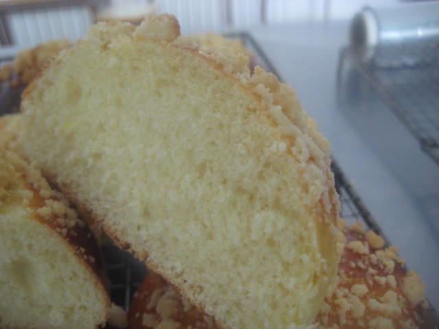 Preparación:Poner todos en la amasadora o en un bol, si se va a hacer a mano, las dos clases de harina, los huevos, el zumo de naranja, el azúcar, la levadura fresca y un poco de ralladura de naranja y amasar unos minutos. Cuando ya tengamos una buena amasa añadir la sal y luego la margarina y volver a amasar hasta que obtengamos una masa elástica. Poner en un bol y dejar reposar en la nevera hasta el día siguiente, bien tapada.
