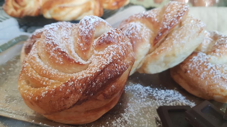 13. Llegados a este punto, podemos hacer dos cosas. O nos los zampamos todos bien espolvoreaditos con azúcar glas o los congelamos para poder disfrutarlos de un en uno. Unos segundos en el micro y como recién horneados.