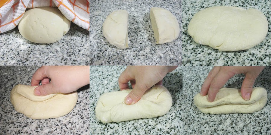 Dividimos la masa en 2 y mientras trabajamos un trozo , el otro lo volveremos a cubrir con el paño .