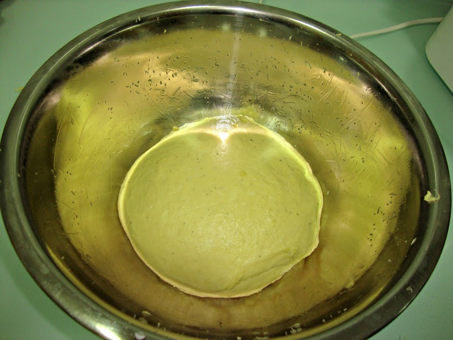 Le ponemos en un cuenco un poco engrasado, lo tapamos y dejamos reposar en un sitio cálido hasta que doble su volumen (tarda entre hora y media y dos horas).