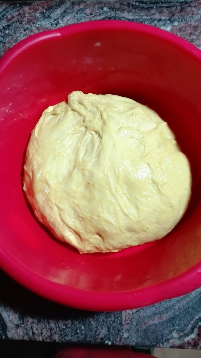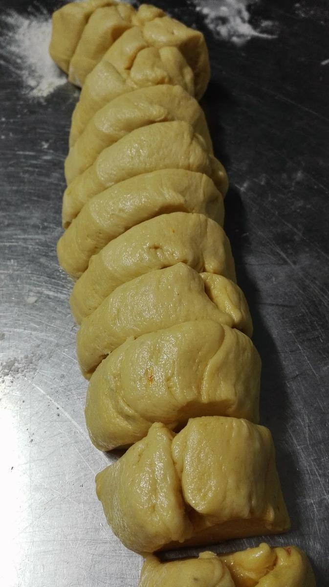 Los bollos salen de una textura y un color dorado precioso debido al azafran, pero es esa clase de bollos muy poco dulces con un toque salado que nos recuerda un poco a los Bretzel.