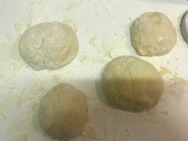 Pon la masa en la superficie de trabajo espolvoreada con harina (es una masa humeda) y amásala para sacarle el aire, divide en tantas pates como bollos quieras hacer y dales forma de bola.