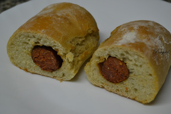 Se me ocurrió hacer unos bollos preñaos y que mejor chorizos que esos, es una lastima que no hallan inventado nada para que a través de la pantalla pueda llegar ese olorcito a pimentón tan especial como los chorizos de allí, pero bueno supongo que podéis imaginarlo, verdad?