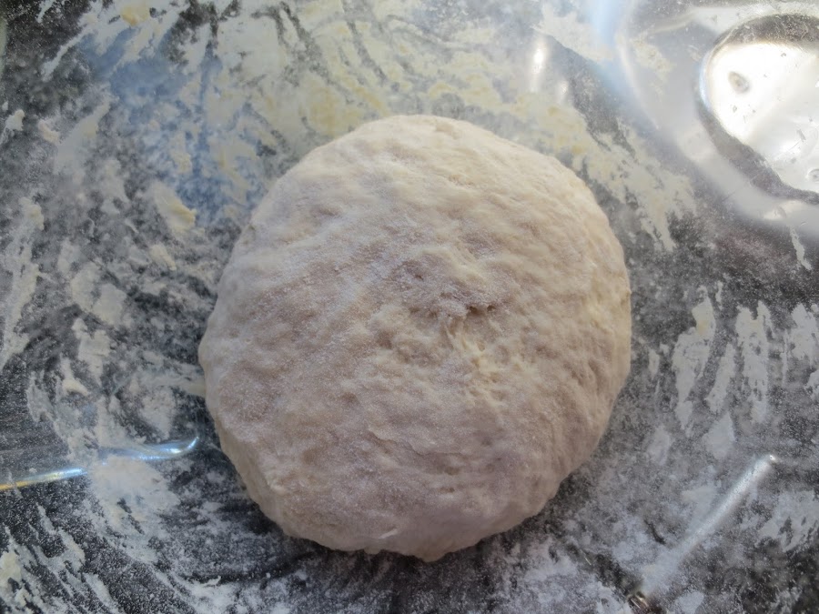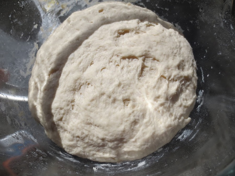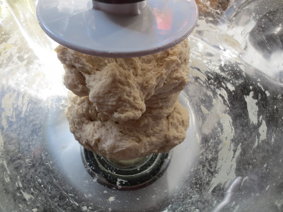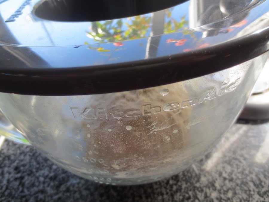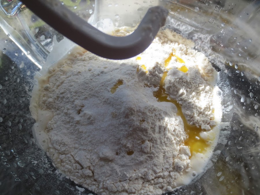 2- Añadir la harina, aceite y sal y amasar en velocidad 2, hasta que las paredes del bol queden limpias, con las manos enharinadas formar como una bola, sometiendo la masa para dentro, ésto hará que leve antes y mejor.