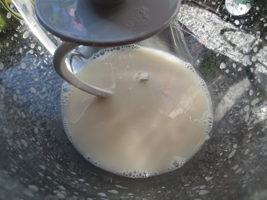 Y cuando los bordes del vaso estén limpios y la masa se "encarame" al gancho, jejej ya está la masa