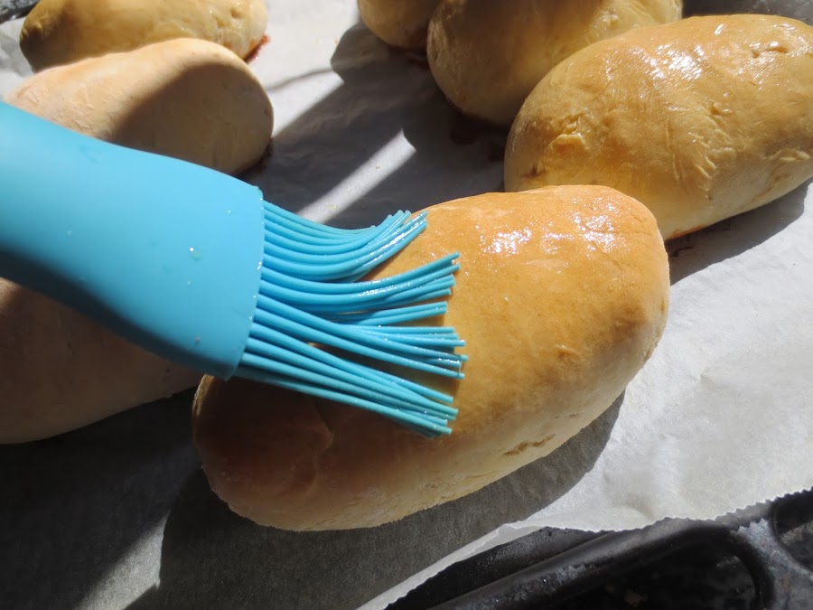 Recién sacados del horno, a mi me gusta pintar con aceite de oliva pero como os guste más