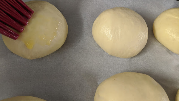 9. Batimos los 2 huevos medianos y pintamos los 9 bollitos de la primera tanda (han salido 17 unidades)