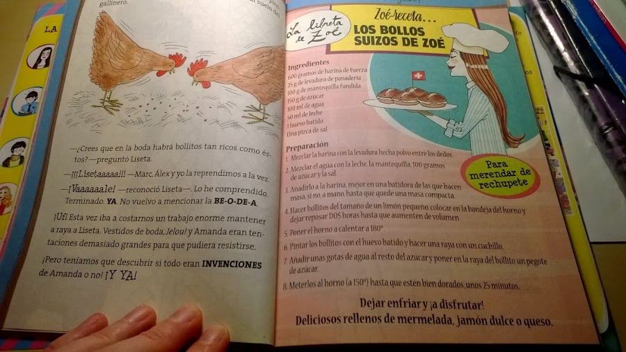 La lectura no entra dentro de sus aficiones pero recientemente le han regalado un libro que parece estar cambiando el asunto. Un libro lleno de dibujos y colores del que parece haber destacado especialmente una página. La página en la que está la receta de los bollos suizos de Zoe.